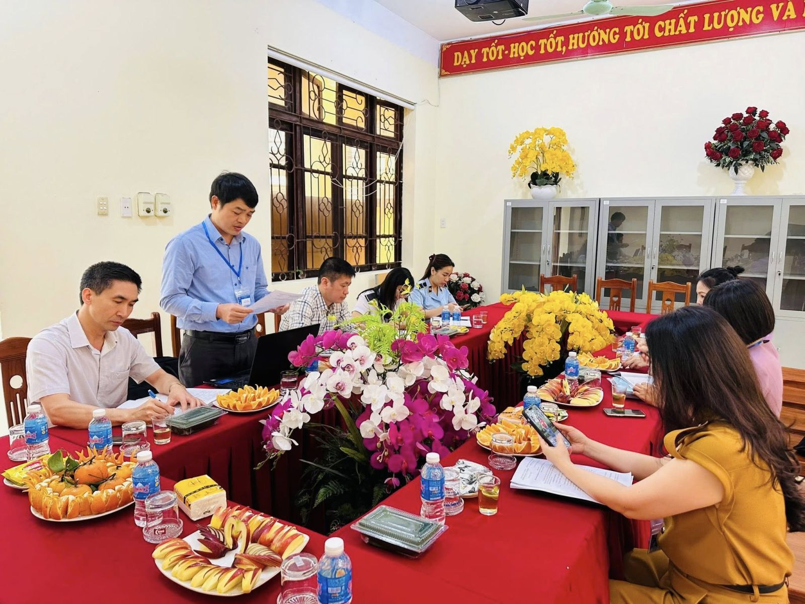 Đoàn kiểm tra gồm đại diện các cơ quan: Sở Y tế, Sở Nông nghiệp và Môi trường, Sở Giáo dục và Đào tạo, Công an tỉnh, Chi cục Quản lý thị trường và UBND phường Tam Thanh. Tại buổi kiểm tra, Ban Giám hiệu nhà trường cùng các bộ phận liên quan đã phối hợp chặt chẽ, cung cấp đầy đủ hồ sơ, tài liệu phục vụ công tác kiểm tra.