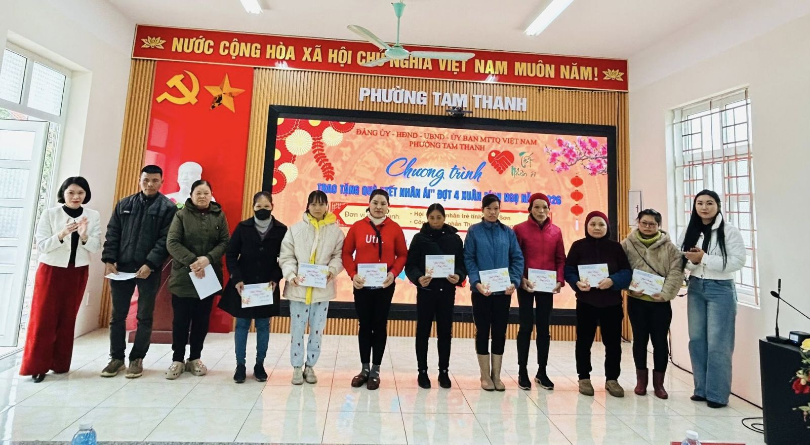 Tiếp tục phát huy tinh thần “tương thân tương ái”, “không để ai bị bỏ lại phía sau”, chiều ngày 11/02/2026, Đảng uỷ - HĐND - UBND - UBMTTQ phường Tam Thanh đã tổ chức chương trình trao quà “Tết Nhân ái” đợt 4 dành cho các hộ nghèo, cận nghèo, các đối tượng có hoàn cảnh khó khăn và học sinh trên địa bàn phường.