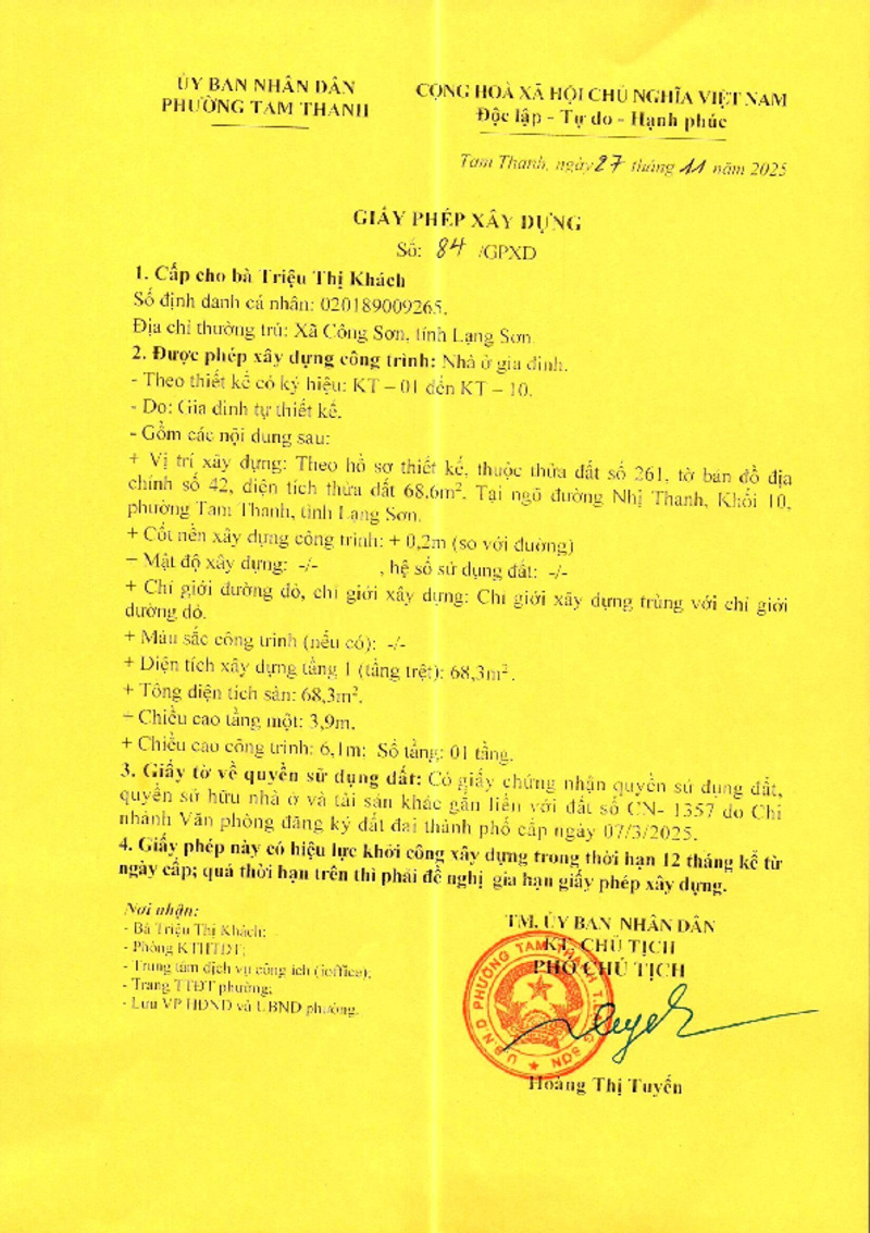 | Tiêu đề văn bản | Giấy phép xây dựng bà Triệu Thị Khách | ||
