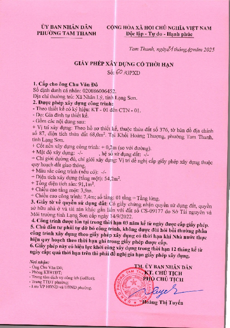 | Tiêu đề văn bản | Giấy phép xây dựng Chu Văn Đô | ||