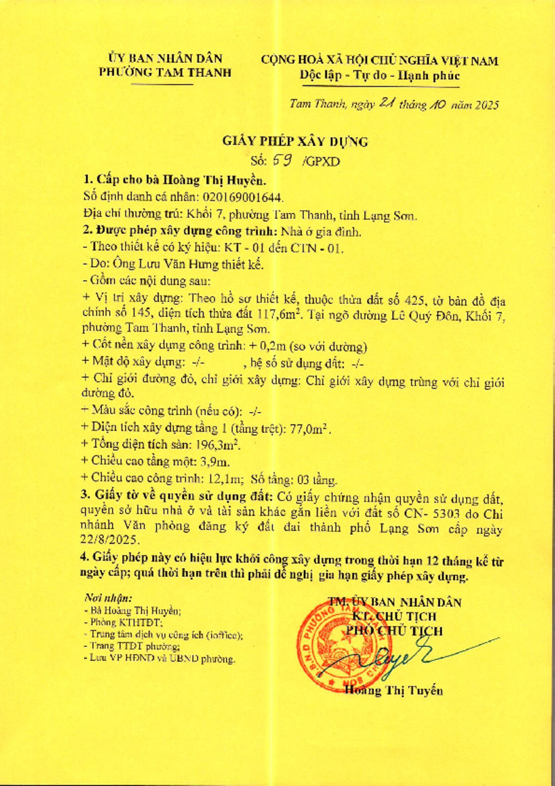 | Tiêu đề văn bản | Giấy phép xây dựng Hoàng Thị Huyền | ||
