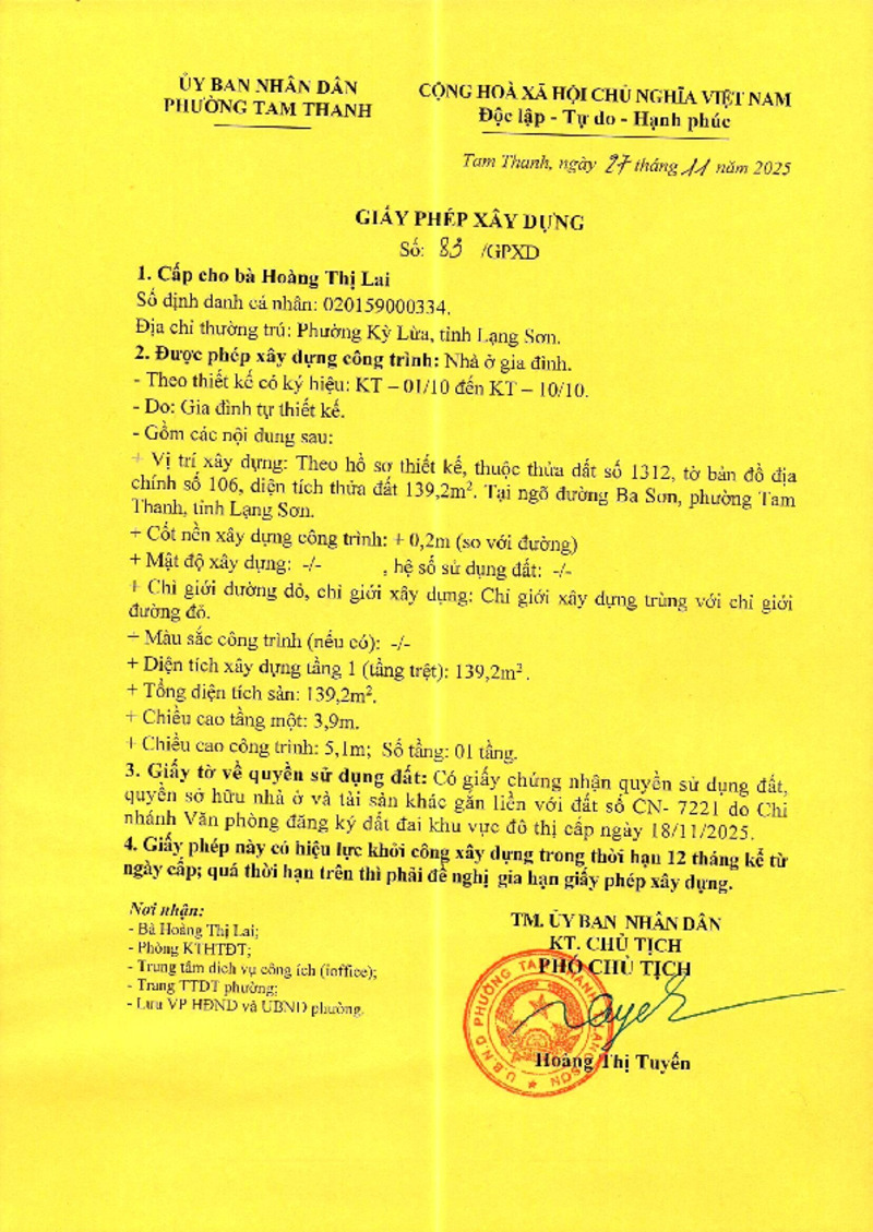 | Tiêu đề văn bản | Giấy phép xây dựng Hoàng Thị Lai | ||