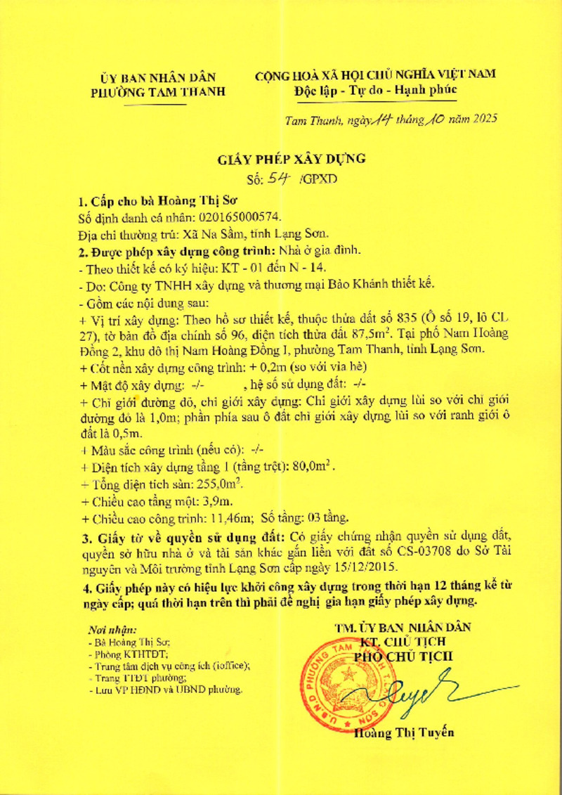 | Tiêu đề văn bản | Giấy phép xây dựng Hoàng Thị Sơ | ||