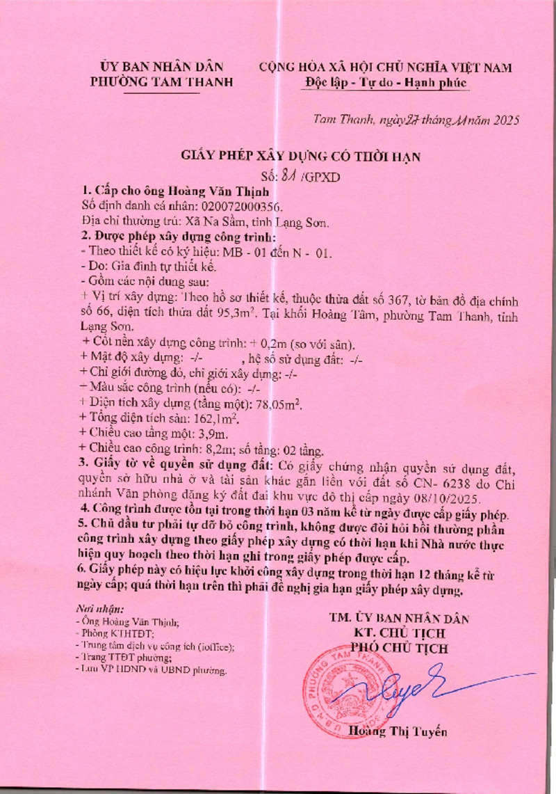 | Tiêu đề văn bản | Giấy phép xây dựng Hoàng Văn Thịnh | ||