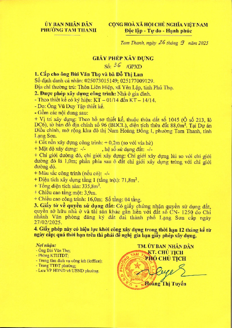 | Tiêu đề văn bản | Giấy phép xây dựng ông Bùi Văn Thọ | ||