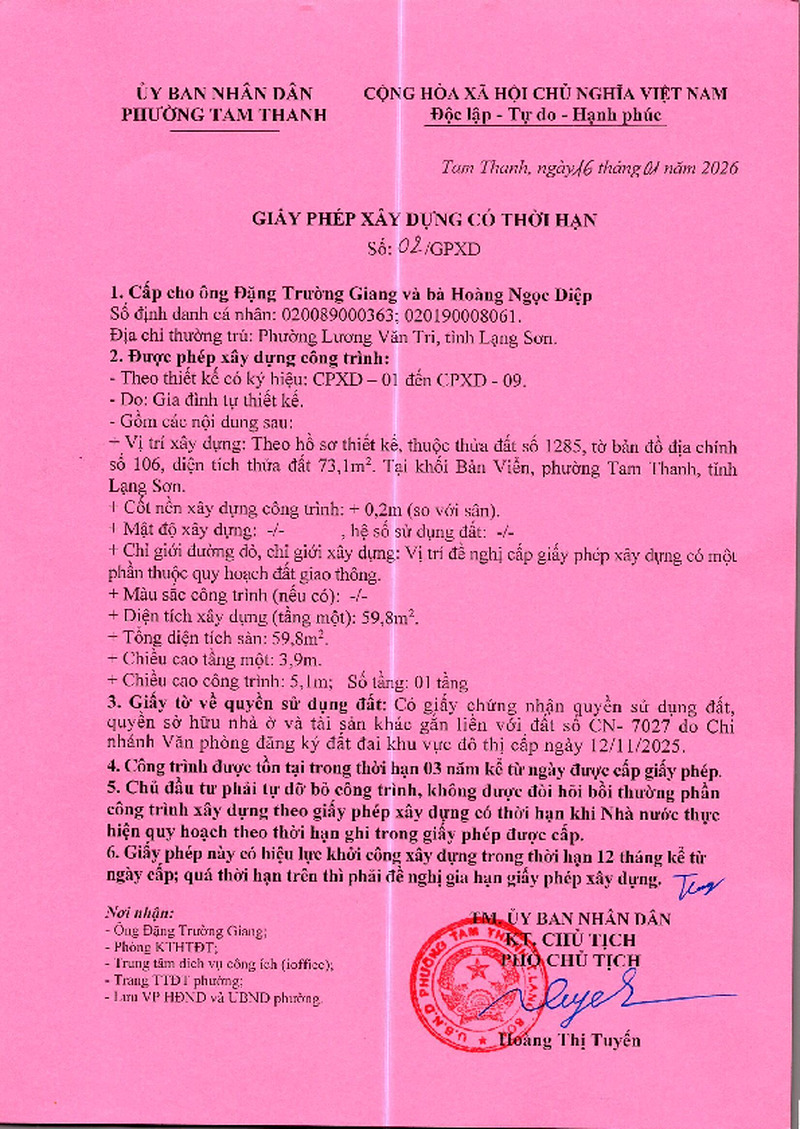 | Tiêu đề văn bản | Giấy phép xây dựng ông Đặng Trường Giang | ||