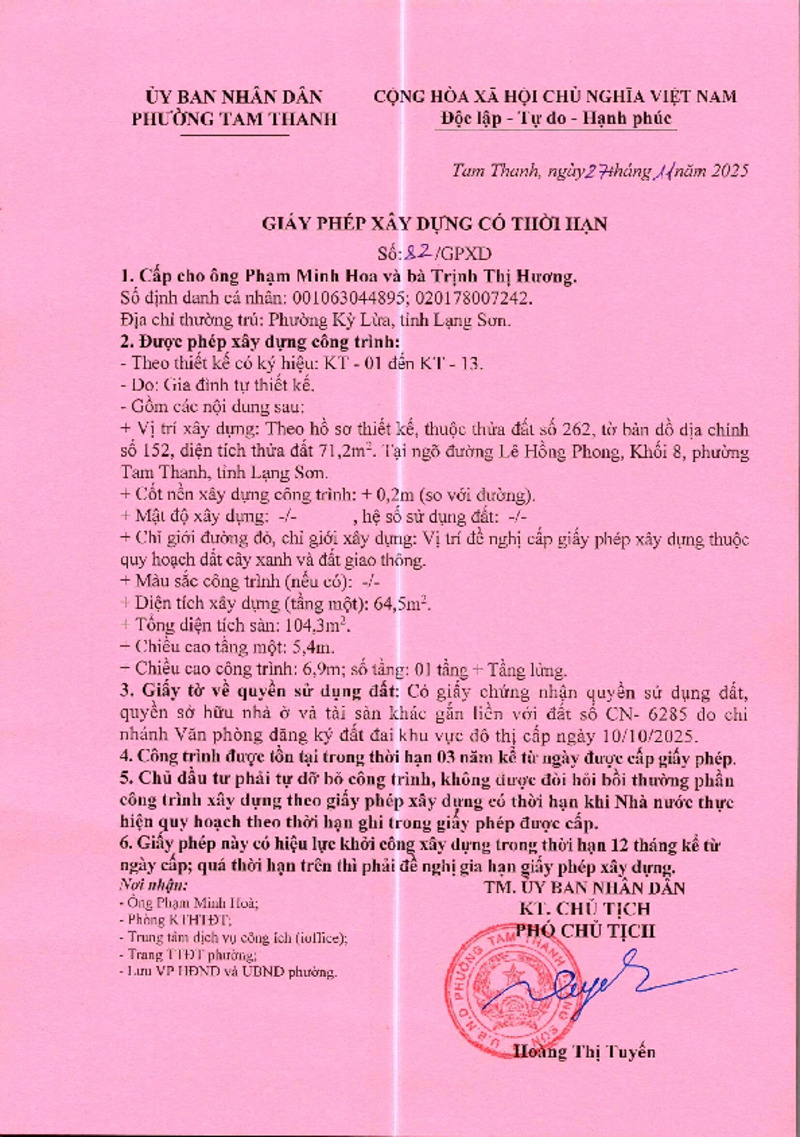 | Tiêu đề văn bản | Giấy phép xây dựng Phạm Minh Hoa | ||