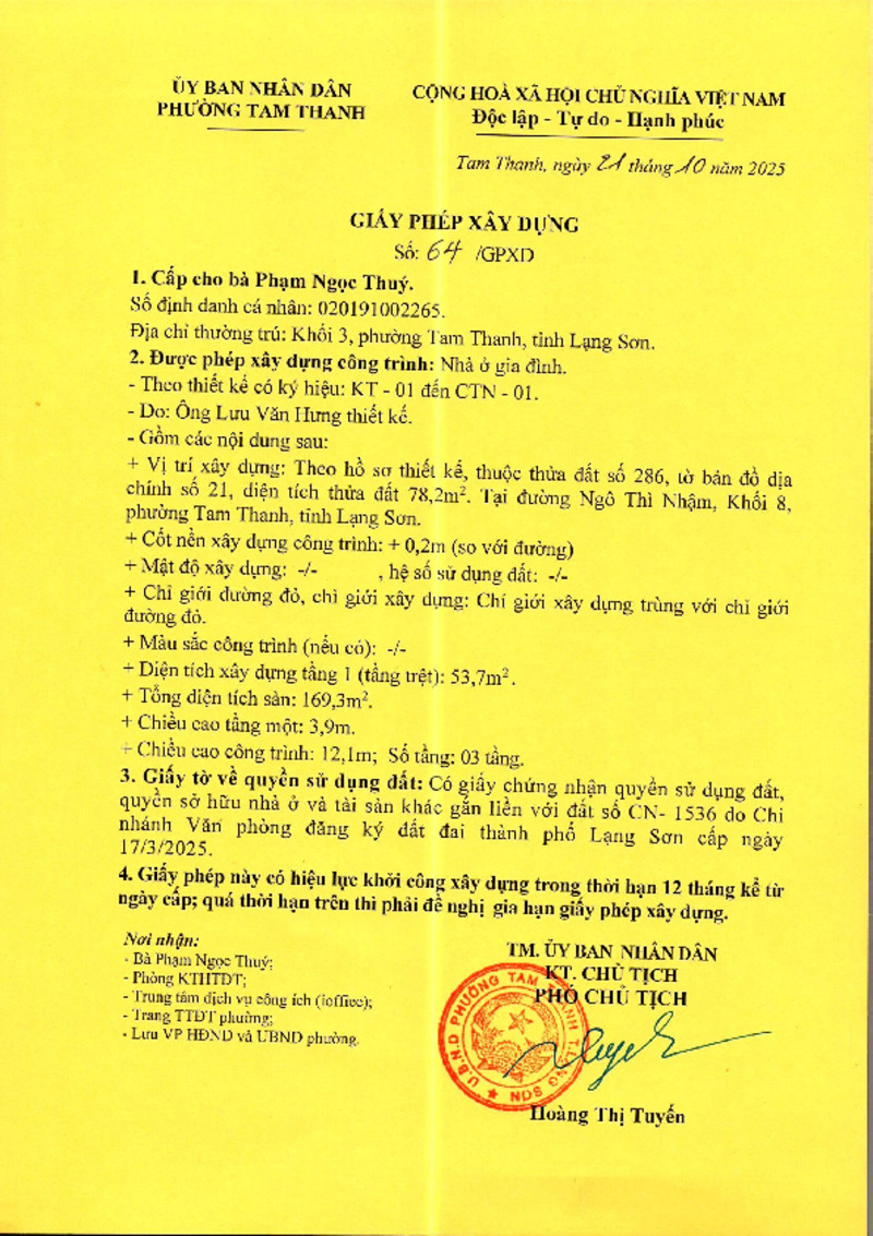 | Tiêu đề văn bản | Giấy phép xây dựng Phạm Ngọc Thúy số 64 | ||