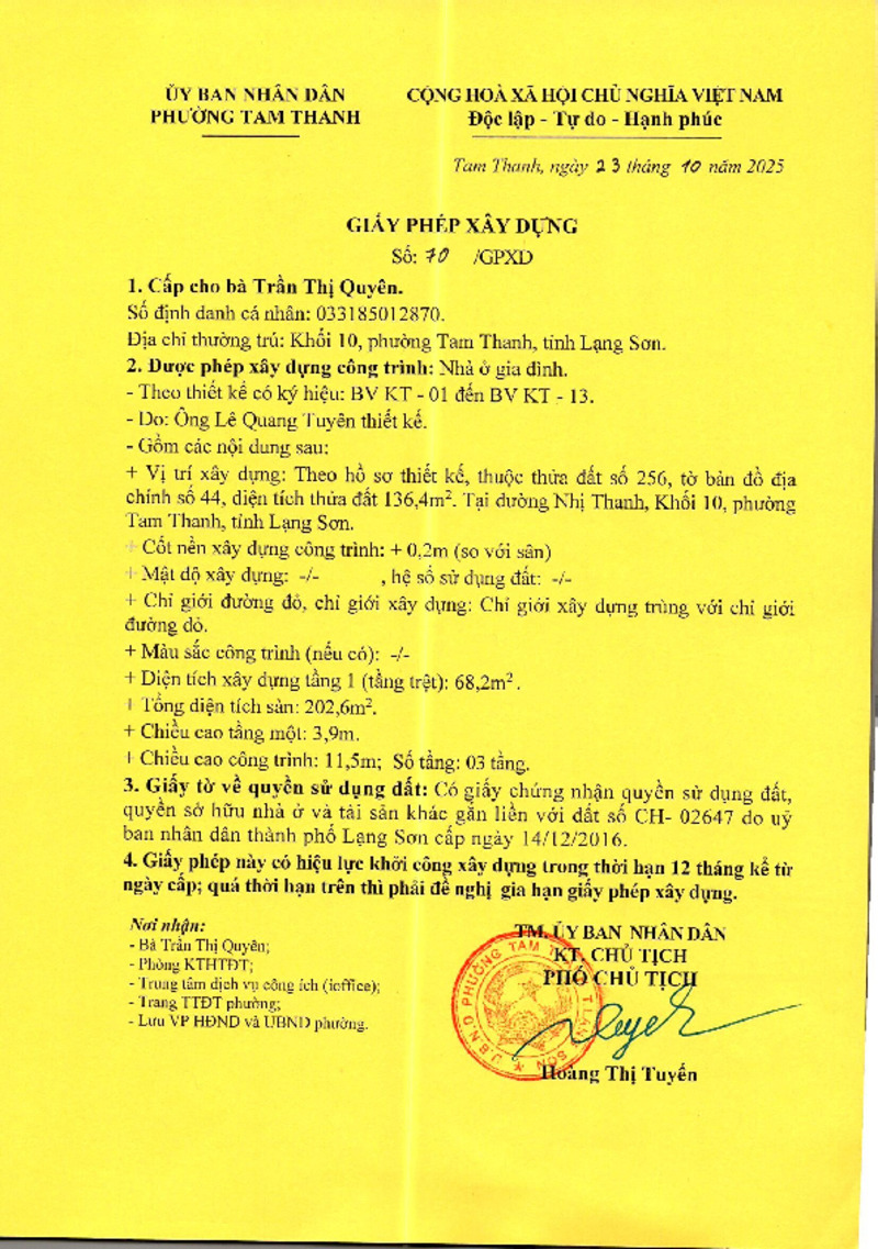 | Tiêu đề văn bản | Giấy phép xây dựng Trần Thị Quyên | ||