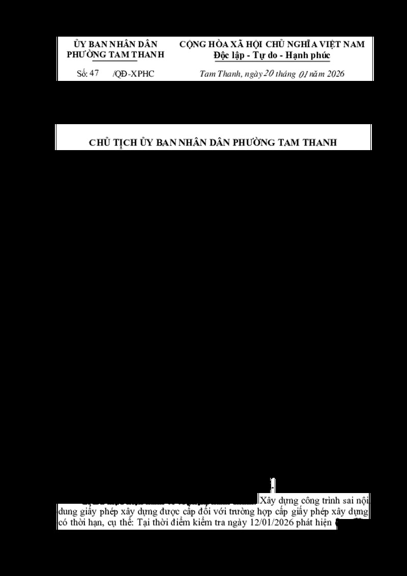 | Tiêu đề văn bản | Quyết về việc xử phạt vi phạm hành chính trong lĩnh vực xây dựng (ông Chu Minh Tuấn) | ||