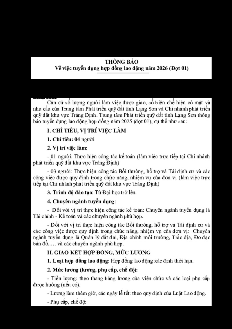 | Tiêu đề văn bản | Về việc tuyển dụng hợp đồng lao động năm 2025 (Đợt 01) | ||