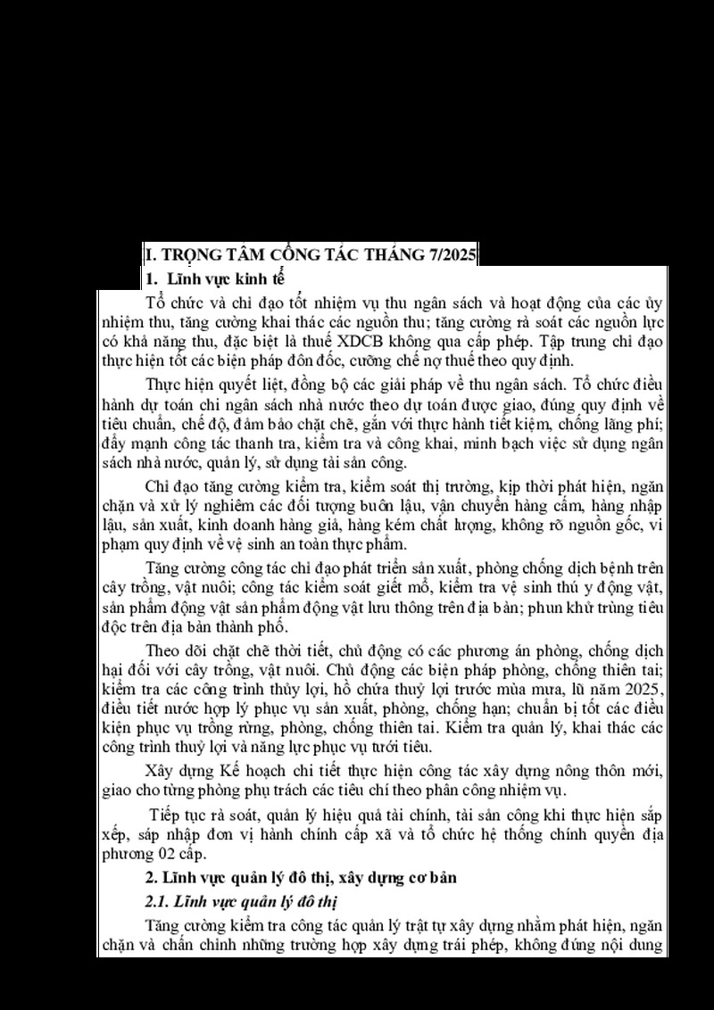 | Tiêu đề văn bản | Chương trình công tác tháng 7 năm 2025 của UBND phường Tam Thanh | ||