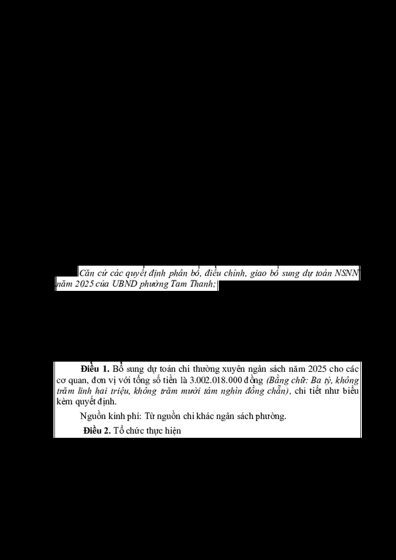 Tiêu đề văn bản Quyết định về việc bổ sung dự toán chi ngân sách nhà nước năm 2025