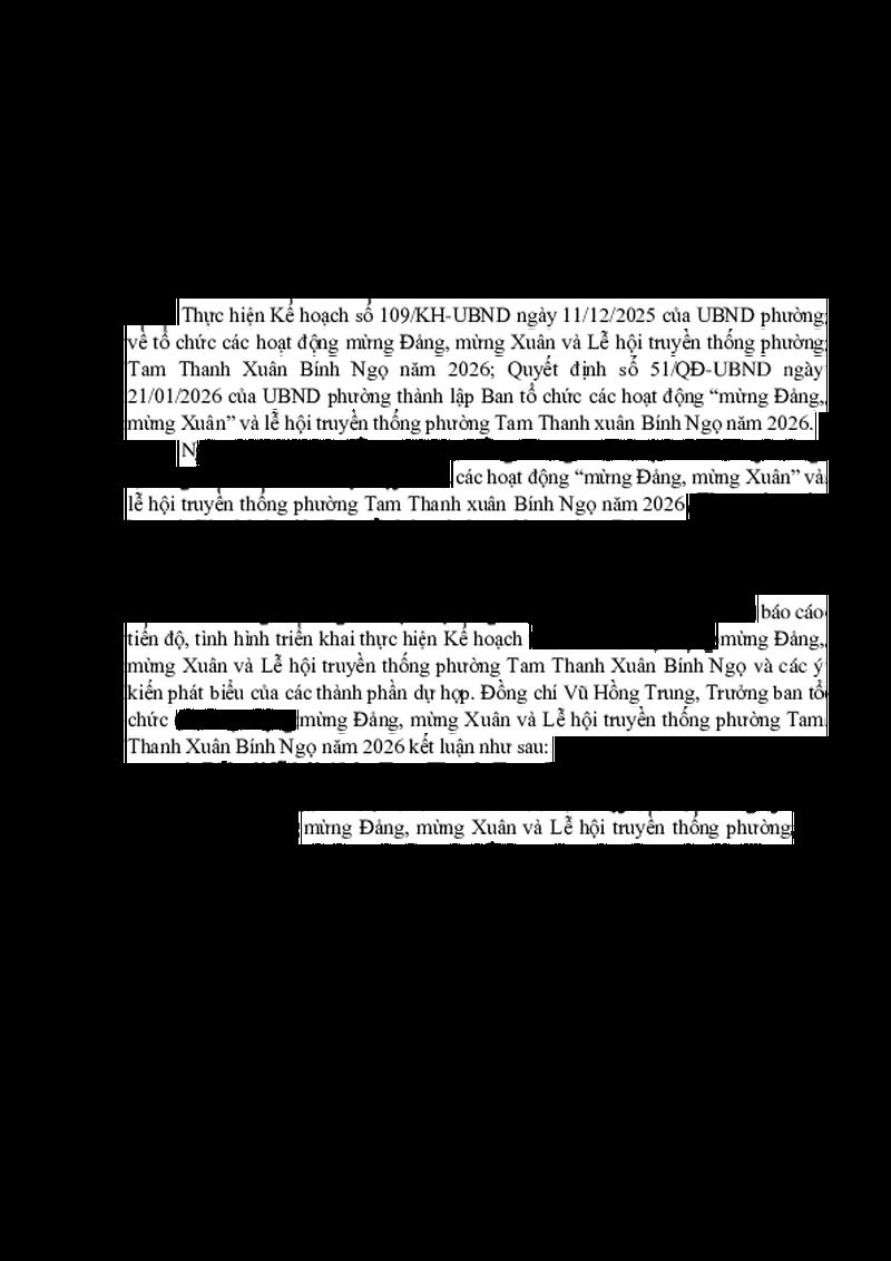 | Tiêu đề văn bản | Thông báo kết luận cuộc họp Ban tổ chức các hoạt động mừng Đảng, mừng Xuân và Lễ hội truyền thống phường Tam Thanh Xuân Bính Ngọ năm 2026 | ||