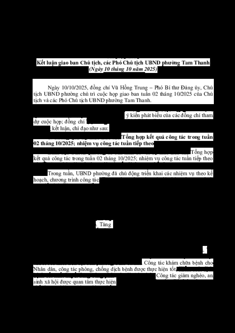 | Tiêu đề văn bản | Thông báo kết luận giao ban tháng 10 năm 2025 | ||