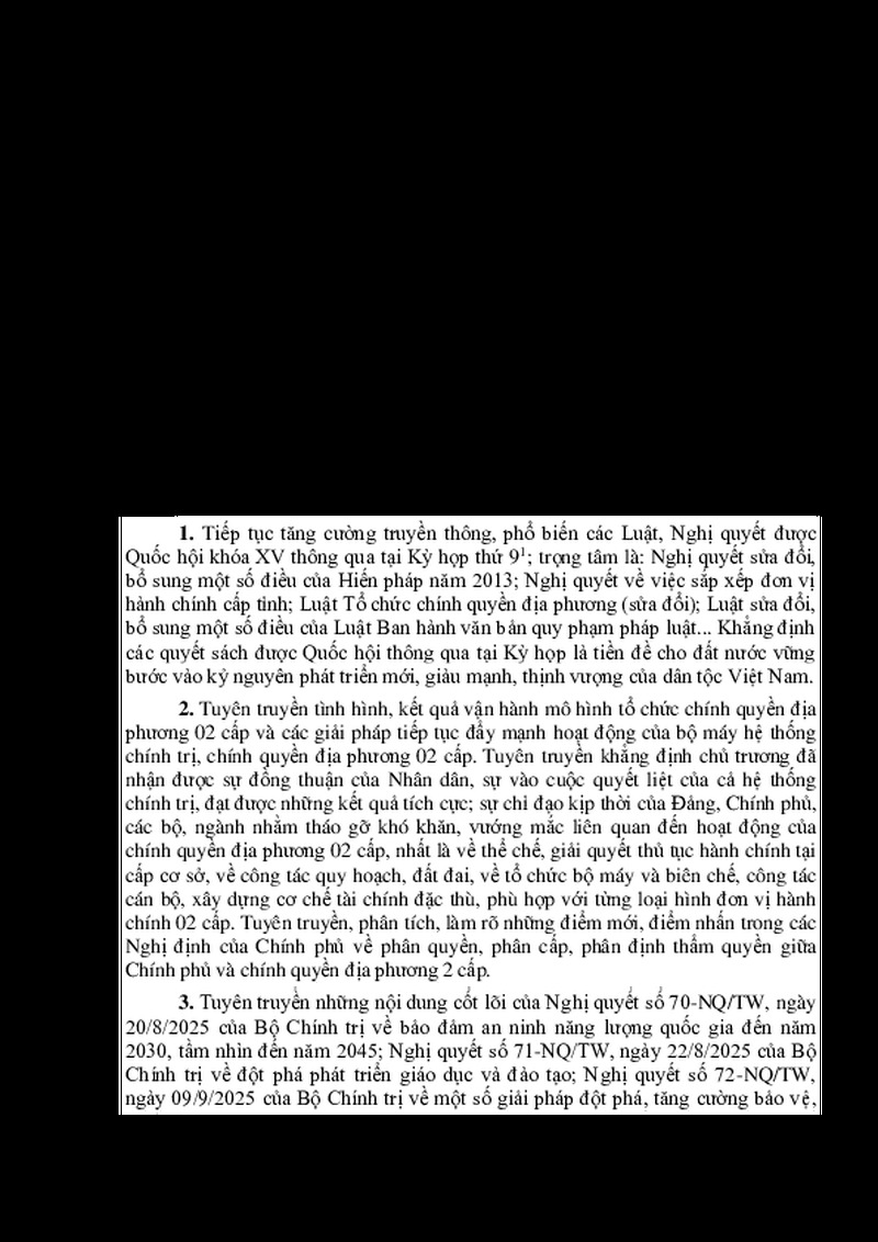 | Tiêu đề văn bản | V/v định hướng tuyên truyền, phổ biến giáo dục pháp luật quý IV năm 2025 | ||