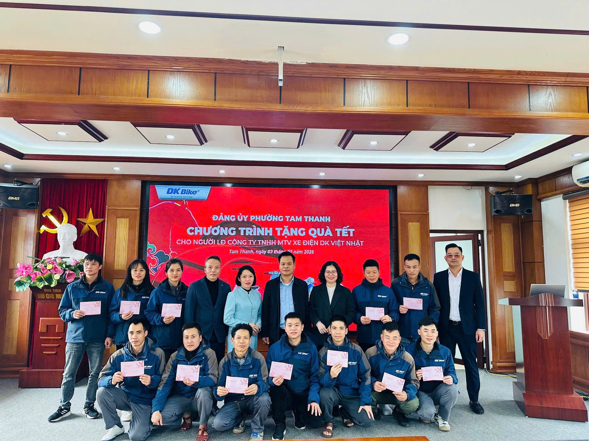Nhân dịp Tết Nguyên đán cổ truyền của dân tộc, nhằm kịp thời động viên, chia sẻ với đoàn viên, công nhân lao động có hoàn cảnh khó khăn, Đảng uỷ - HĐND – UBND - UBMTTQ phường Tam Thanh đã tổ chức thăm hỏi, tặng quà cho công nhân đang làm việc tại Công ty TNHH MTV Xe điện DK Việt Nhật trên địa bàn phường.