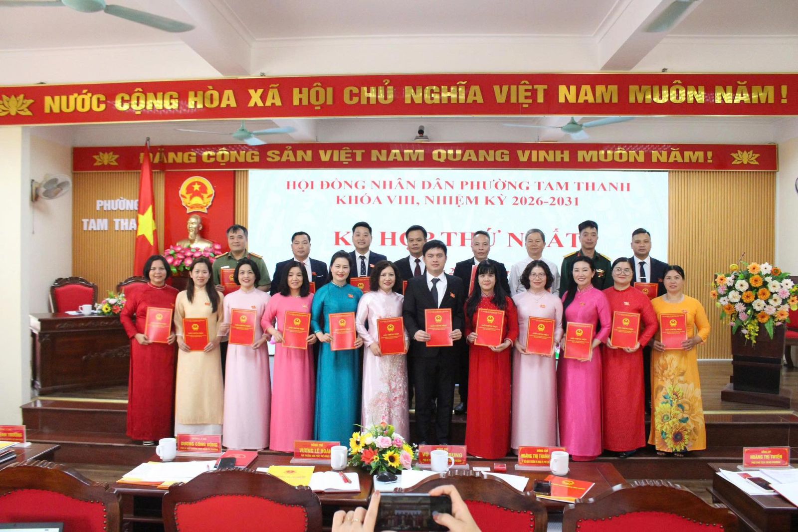 Kỳ họp thứ nhất Hội đồng nhân dân phường Tam Thanh, nhiệm kỳ 2026–2031 đã thành công tốt đẹp, tạo tiền đề vững chắc cho sự phát triển trong thời gian tới. ![]()