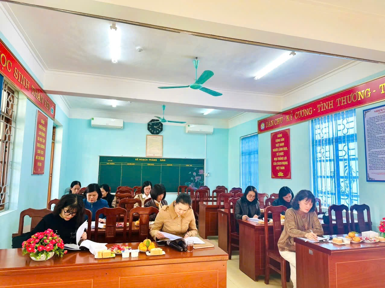 Đoàn kiểm tra Phòng Văn hóa – Xã hội phường Tam Thanh làm việc tại nhà trường.