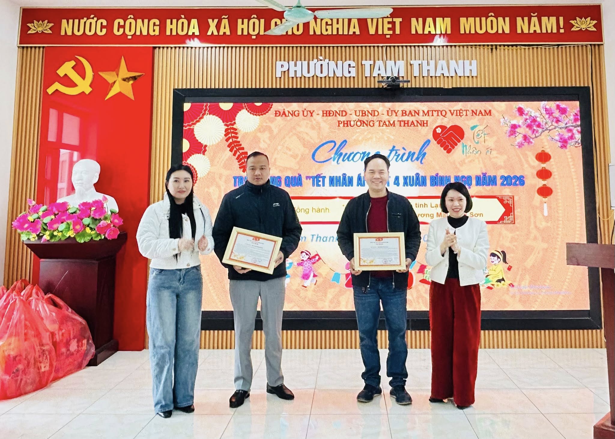 Tiếp tục phát huy tinh thần “tương thân tương ái”, “không để ai bị bỏ lại phía sau”, chiều ngày 11/02/2026, Đảng uỷ - HĐND - UBND - UBMTTQ phường Tam Thanh đã tổ chức chương trình trao quà “Tết Nhân ái” đợt 4 dành cho các hộ nghèo, cận nghèo, các đối tượng có hoàn cảnh khó khăn và học sinh trên địa bàn phường.