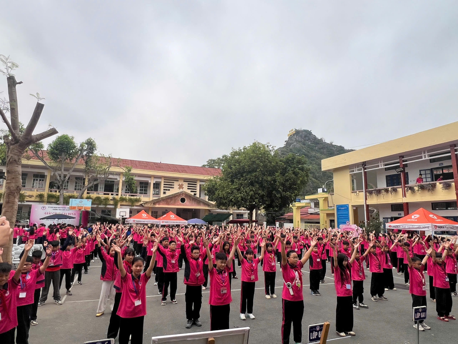 Tiếp nối chương trình là màn đồng diễn đặc sắc của học sinh khối 6. Với sự tham gia đồng đều, động tác nhịp nhàng và tinh thần tập thể cao, các em đã mang đến một phần trình diễn ấn tượng, thể hiện sự năng động, đoàn kết và sức trẻ của học sinh nhà trường. Màn đồng diễn đã nhận được nhiều sự cổ vũ nhiệt tình từ thầy cô và các bạn học sinh. Không khí ngày hội càng thêm rộn ràng với các trò chơi tập thể dành cho cả giáo viên và học sinh. Những trò chơi vui nhộn, mang tính gắn kết cao không chỉ giúp giải tỏa căng thẳng sau giờ học mà còn tăng cường tinh thần đoàn kết, giao lưu giữa thầy và trò.