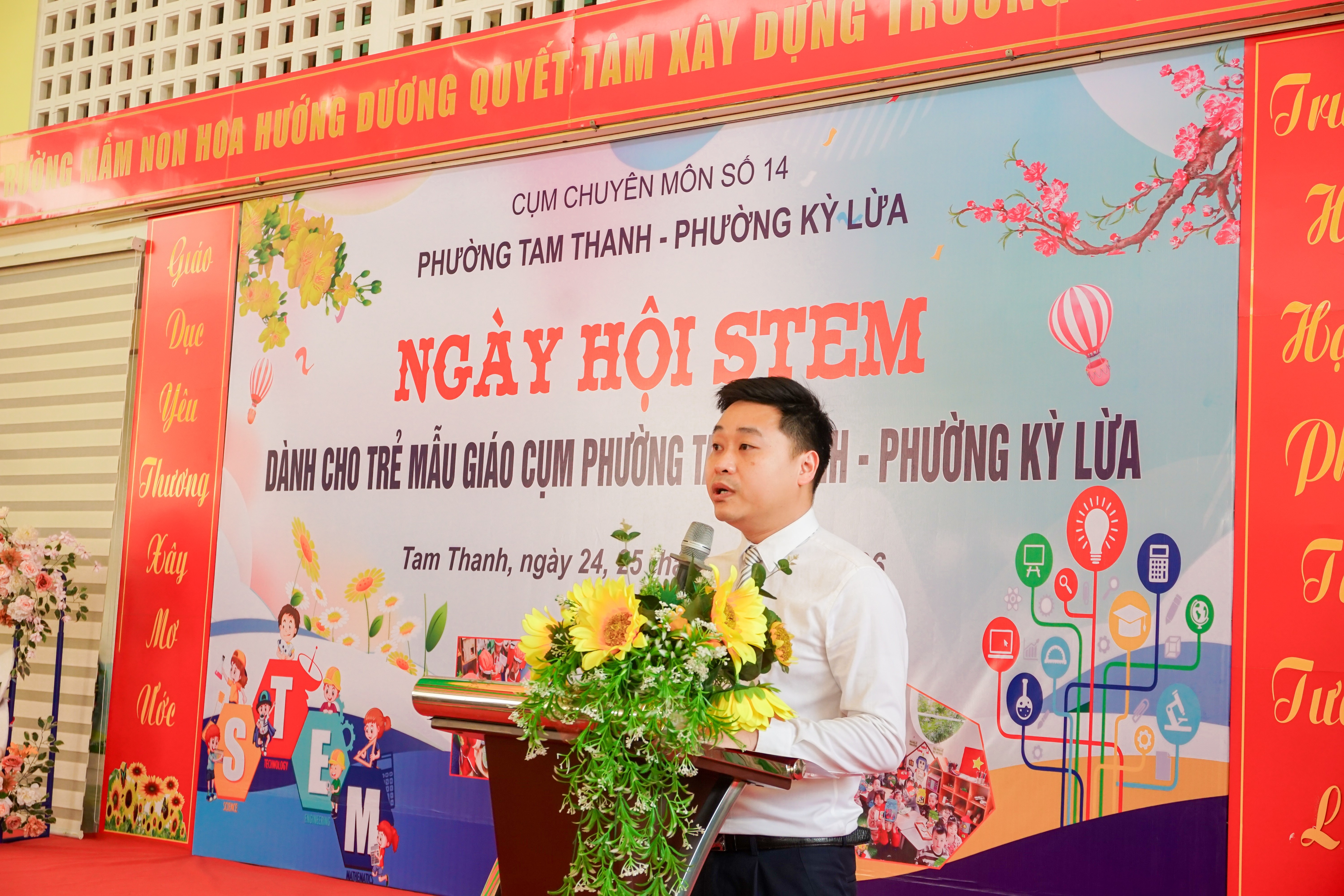 Đặc biệt, tham dự Ngày hội có bà Nguyễn Ngọc - Phó Trưởng phòng Giáo dục Mầm non - Tiểu học, Sở Giáo dục và Đào tạo tỉnh Lạng Sơn cùng đại diện lãnh đạo các đơn vị liên quan. Phát biểu khai mạc chương trình, ông Nguyễn Đức Vũ - Phó Chủ tịch UBND phường Tam Thanh, Cụm trưởng cụm số 14 nhấn mạnh ý nghĩa của việc tổ chức các hoạt động STEM trong giáo dục mầm non; qua đó góp phần hình thành tư duy sáng tạo, kỹ năng thực hành và niềm say mê khám phá khoa học cho trẻ ngay từ những năm đầu đời.