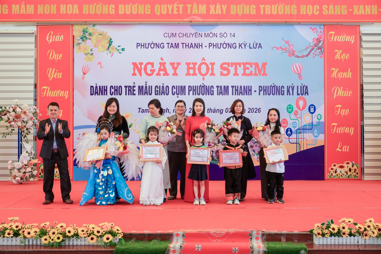 Trong hai ngày 24-25/3/2026, tại Trường Mầm non Hoa Hướng Dương, UBND phường Tam Thanh (cụm trưởng cụm số 14) đã phối hợp với phường Kỳ Lừa tổ chức thành công Ngày hội STEM dành cho trẻ mẫu giáo năm học 2025 -2026. Chương trình thu hút sự tham gia của 9/9 cơ sở giáo dục mầm non trong cụm, với 100 trẻ, 15 giáo viên cùng sự đồng hành của phụ huynh và các lực lượng hỗ trợ.