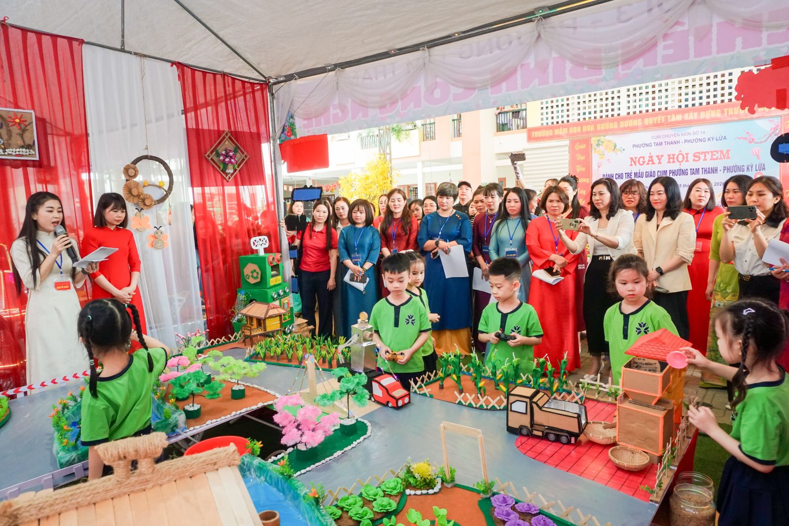 Điểm nhấn của Ngày hội là hoạt động trưng bày các “Dự án STEM của bé” với 5 gian trưng bày tiêu biểu như: “Lạng Sơn tương lai”, “Sắc nước, sắc màu”, “Chiến binh công nghệ”, “Kiến tạo tương lai”, “Biệt đội tái chế”. Các sản phẩm được thiết kế sáng tạo từ nhiều nguyên vật liệu gần gũi, thể hiện rõ khả năng tư duy, khám phá khoa học và vận dụng kiến thức vào thực tiễn của trẻ. Qua đó, góp phần khơi dậy niềm đam mê học tập, phát triển kỹ năng giải quyết vấn đề và tinh thần làm việc nhóm ngay từ lứa tuổi mầm non.