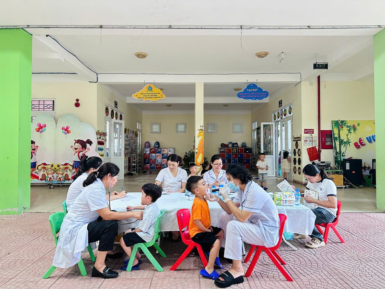 Buổi khám được chuẩn bị chu đáo về cơ sở vật chất, trang thiết bị, khu vực khám riêng biệt cho từng độ tuổi, đảm bảo an toàn và thuận lợi cho trẻ. Đội ngũ bác sĩ, y sĩ và điều dưỡng viên của Trung tâm Y tế phường đã tiến hành khám tổng quát cho trẻ với các nội dung: đo chiều cao, cân nặng, kiểm tra răng – miệng, tai – mũi – họng, thị lực, tim – phổi, da liễu và sàng lọc một số bệnh thường gặp ở lứa tuổi mầm non.