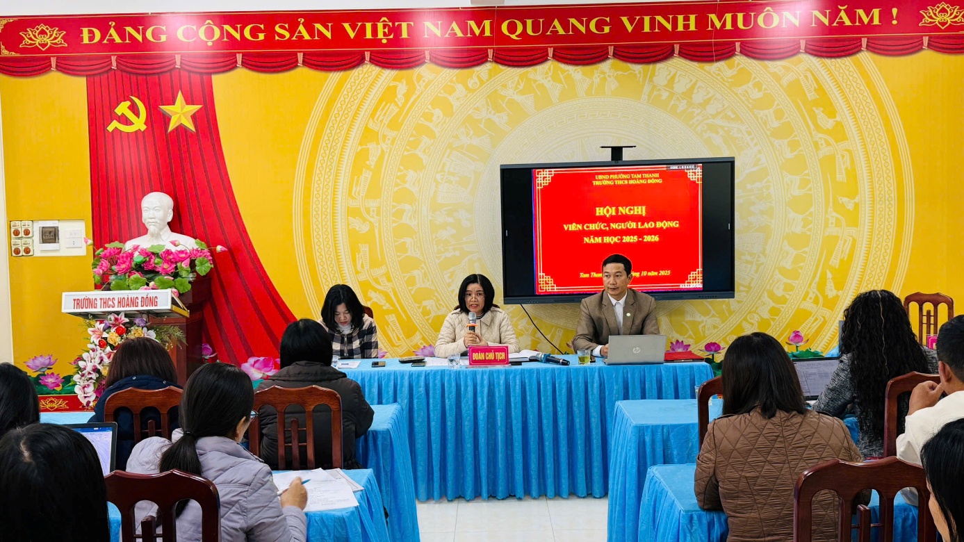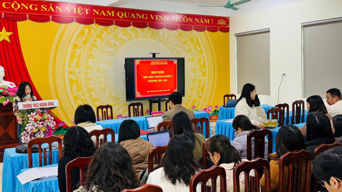 Chiều 24/10, Trường THCS Hoàng Đồng (phường Tam Thanh) tổ chức Hội nghị viên chức, người lao động năm học 2025 – 2026. Tham dự hội nghị có gần 50 cán bộ, giáo viên, nhân viên, đạt hơn 98% tổng số cán bộ, viên chức, người lao động của nhà trường.