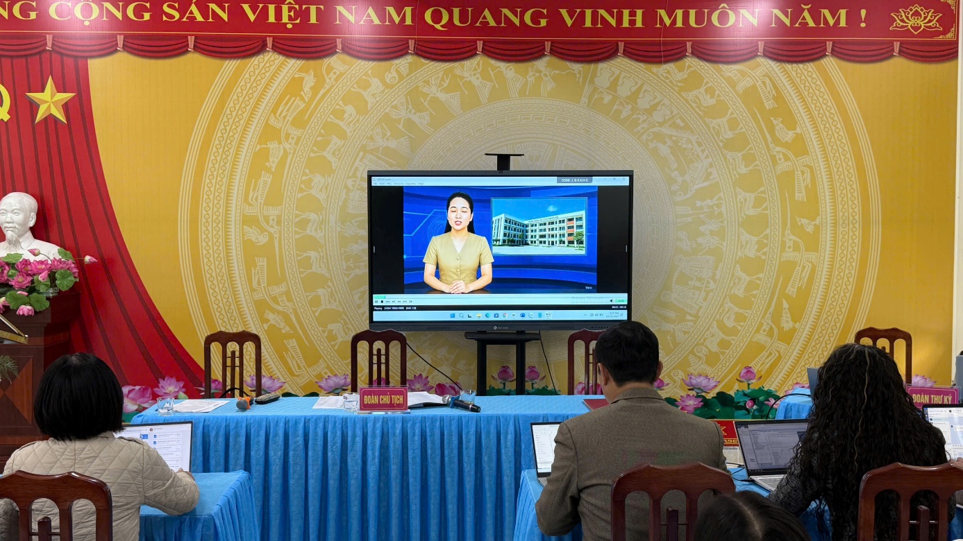 Các đại biểu theo dõi video giới thiệu nhà trường