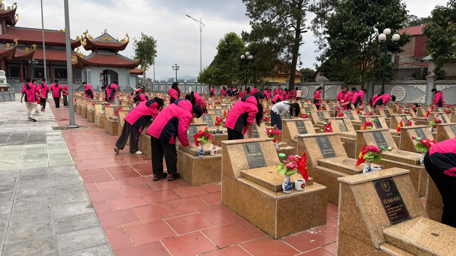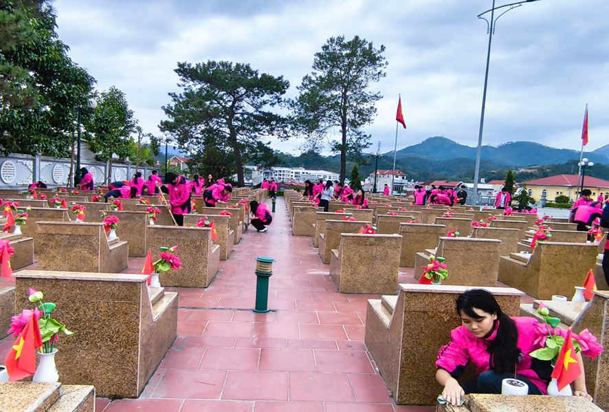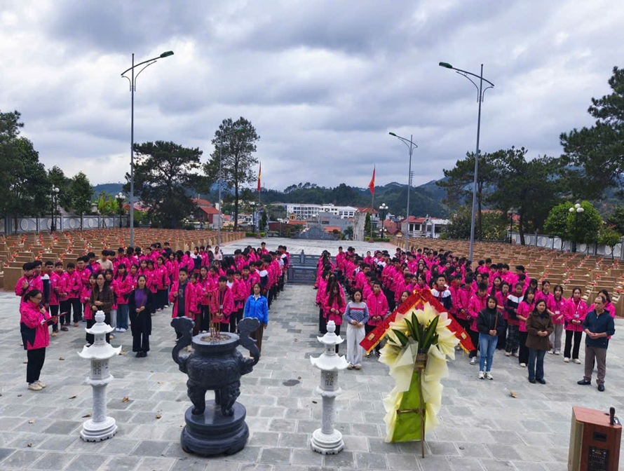 Tại Nghĩa trang Liệt sĩ tỉnh Lạng Sơn, trong không khí trang nghiêm và thành kính, đoàn đã tổ chức lễ dâng hương tại Đài tưởng niệm. Cô Đoàn Thị Phượng, Tổng phụ trách Đội đã ôn lại truyền thống đấu tranh anh dũng, kiên cường của các Anh hùng liệt sĩ qua các thời kỳ kháng chiến. Em Lê Hồng Nga học sinh lớp 9A2 đã thay mặt các bạn học sinh bày tỏ lòng biết ơn sâu sắc đối với sự hy sinh to lớn của các thế hệ cha anh vì độc lập, tự do của Tổ quốc. Sau lễ dâng hương, các em học sinh đã tiến hành thắp hương lên đài tưởng niệm và từng phần mộ liệt sĩ, thể hiện sự tri ân và kính trọng đối với những người đã ngã xuống vì quê hương, đất nước.