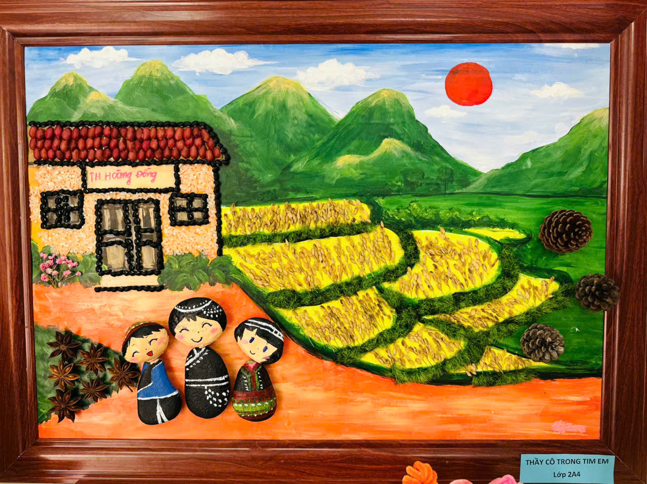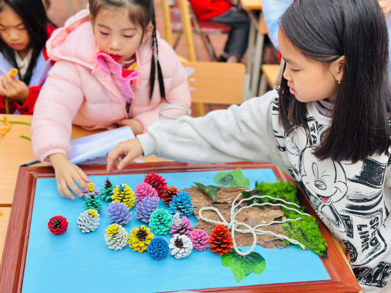 Điểm đặc sắc của ngày hội năm nay là sự đa dạng trong chất liệu sáng tạo. Các em học sinh đã khéo léo sử dụng sáp dầu, đất nặn, xé dán…cùng các vật liệu có sẵn ở địa phương như quả thông, hạt ngô, hạt đỗ, sỏi đá… để tạo nên những tác phẩm nghệ thuật độc đáo, gần gũi và sinh động. Mỗi sản phẩm là một thông điệp yêu thương, là lời tri ân chân thành mà các em dành tặng thầy cô – những người đã tận tâm dạy dỗ, dìu dắt các em trên con đường học tập và trưởng thành.