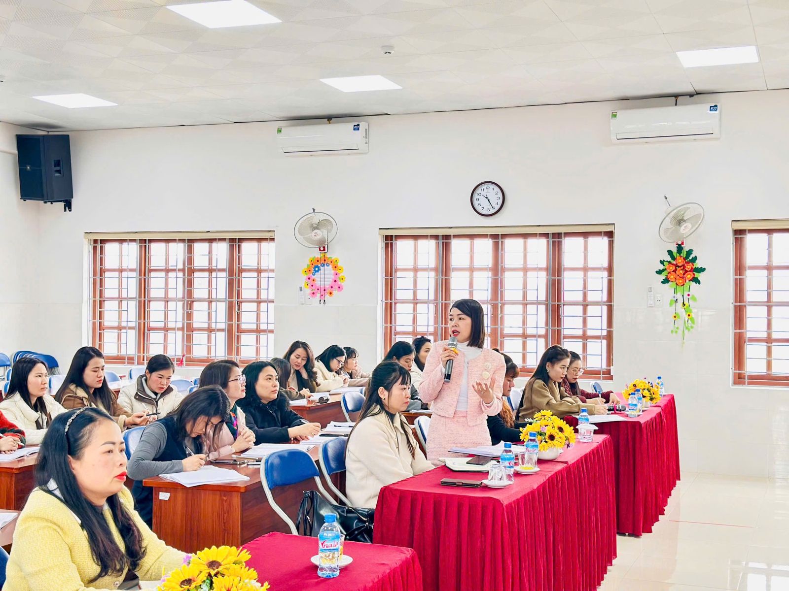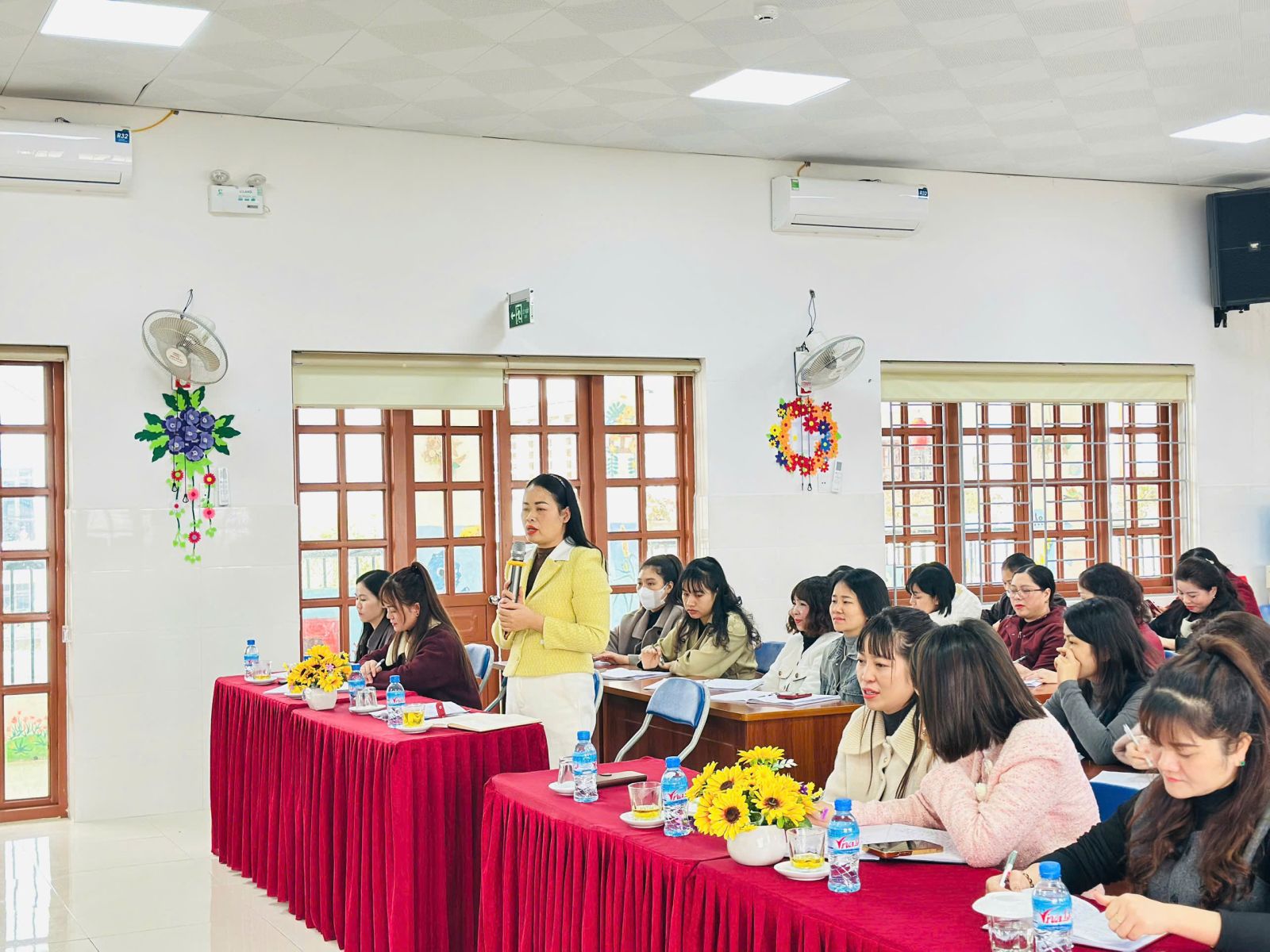 Đồng chí Vi Thanh Hương – Phó hiệu trưởng trường mầm non Hoa Hướng Dương chủ trì buổi trao đổi, thảo luận