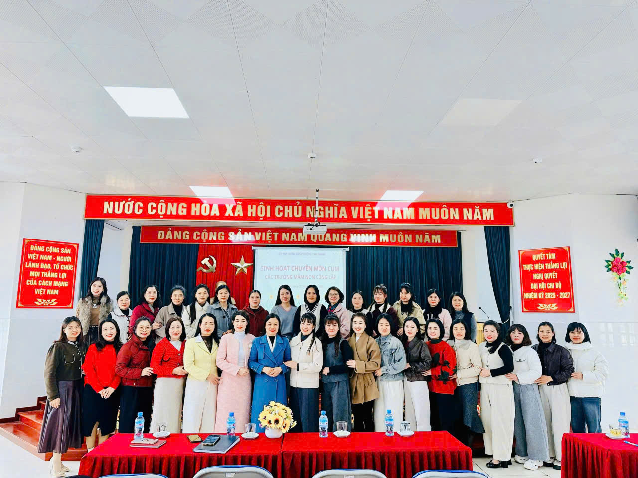 Thực hiện chủ đề năm học 2025 – 2026 về "Đẩy mạnh công nghệ số, tăng cường giáo dục STEM trong cơ sở giáo dục mầm non” và chuyên đề "Xây dựng trường mầm non lấy trẻ làm trung tâm". Sáng ngày 29/01/2026, tại trường mầm non Hoa Sữa và trường mầm non Hoa Hướng Dương, Cụm chuyên môn các trường mầm non công lập trên địa bàn Phường Tam Thanh, tỉnh Lạng Sơn đã tổ chức thành công buổi sinh hoạt chuyên môn Cụm với sự tham gia đại diện của Ban giám hiệu ba trường và đại diện các cô giáo trong 3 trường (MN Hoa Sữa, Hoa Hướng Dương, Hoa Hồng).