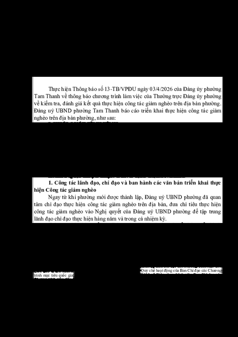 Tiêu đề văn bản Báo cáo kết quả công tác giảm nghèo trên địa bàn phường