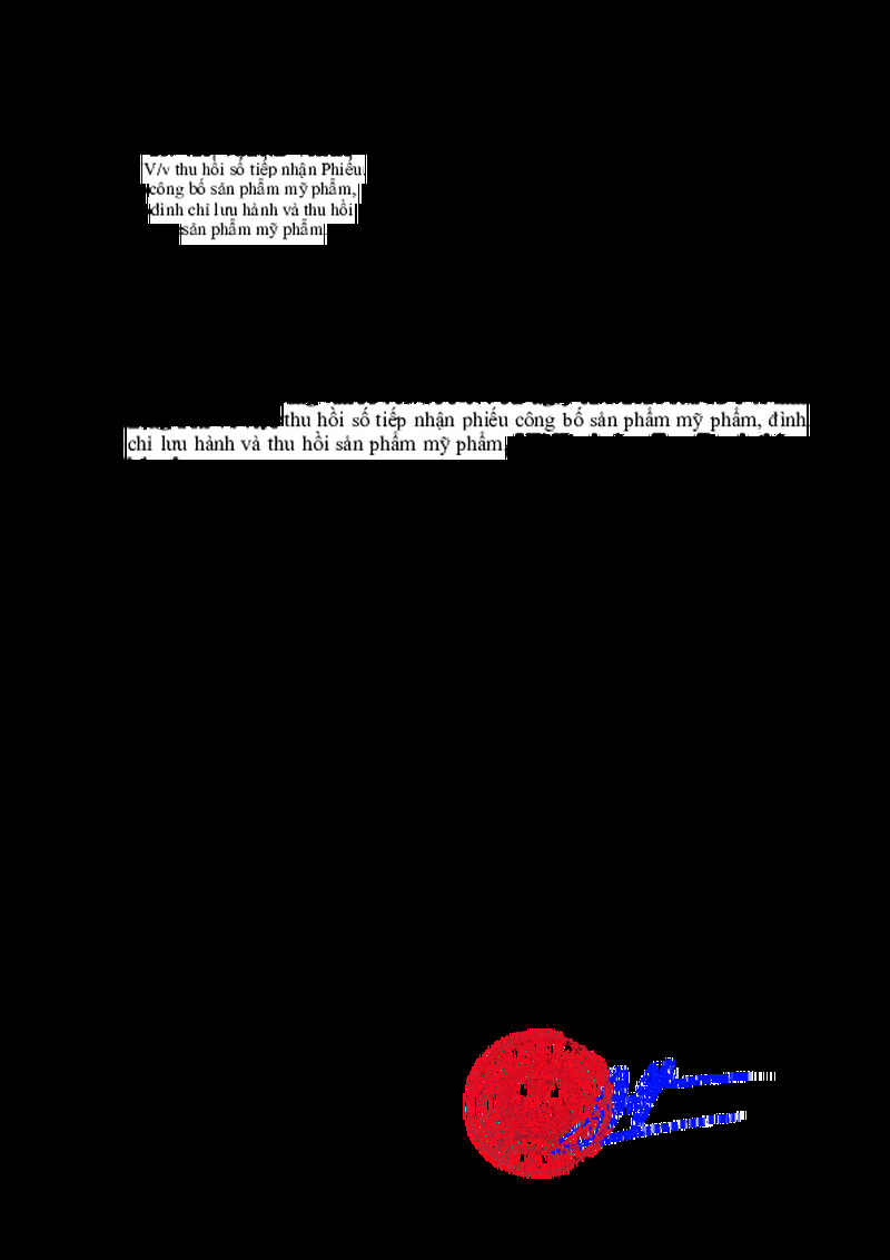 | Tiêu đề văn bản | V/v thu hồi số tiếp nhận Phiếu công bố sản phẩm mỹ phẩm, đình chỉ lưu hành và thu hồi sản phẩm mỹ phẩm | ||