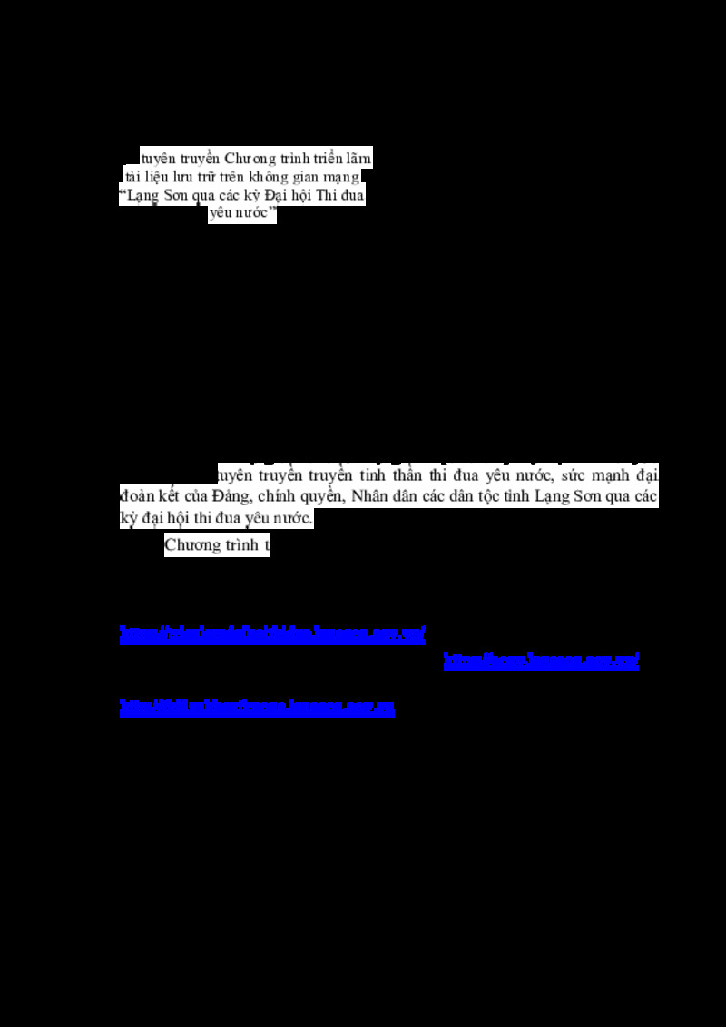 | Tiêu đề văn bản | V/v tuyên truyền Chương trình triển lãm tài liệu lưu trữ trên không gian mạng “Lạng Sơn qua các kỳ Đại hội Thi đua yêu nước” | ||