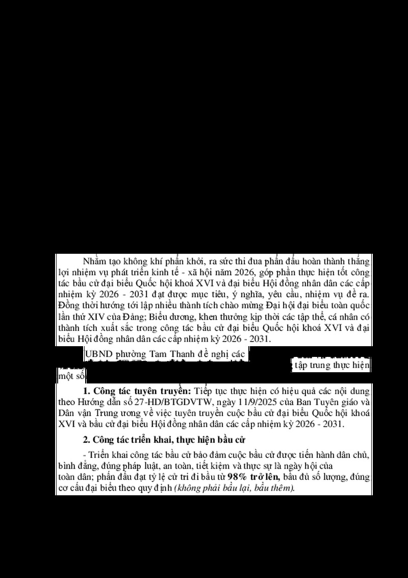 | Tiêu đề văn bản | Về việc đẩy mạnh phong trào thi đua lập thành tích trong công tác bầu cử đại biểu Quốc hội khoá XVI và đại biểu Hội đồng nhân dân các cấp nhiệm kỳ 2026 - 2031 | ||
